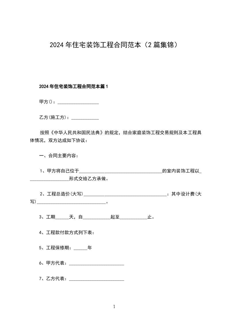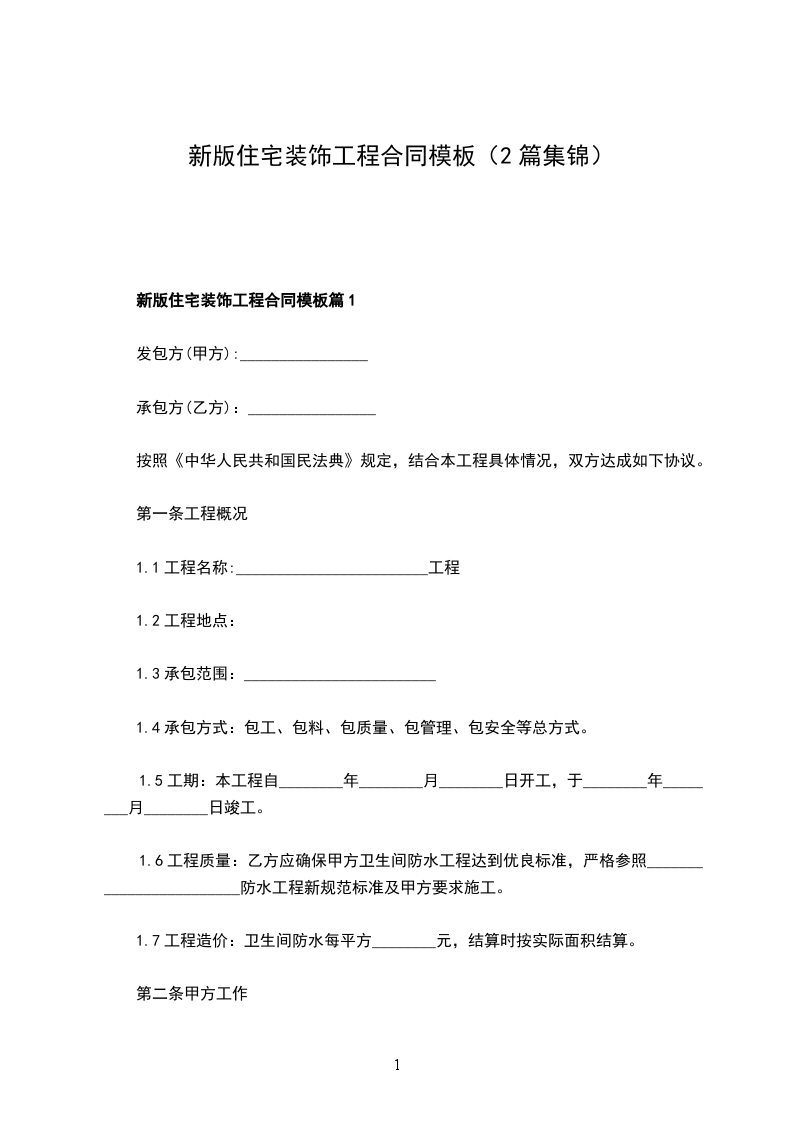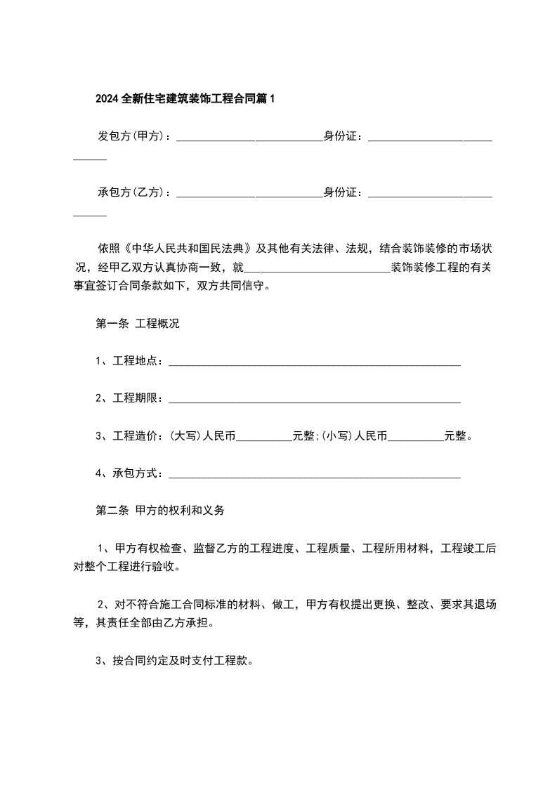 新版住宅装饰工程合同模板篇2