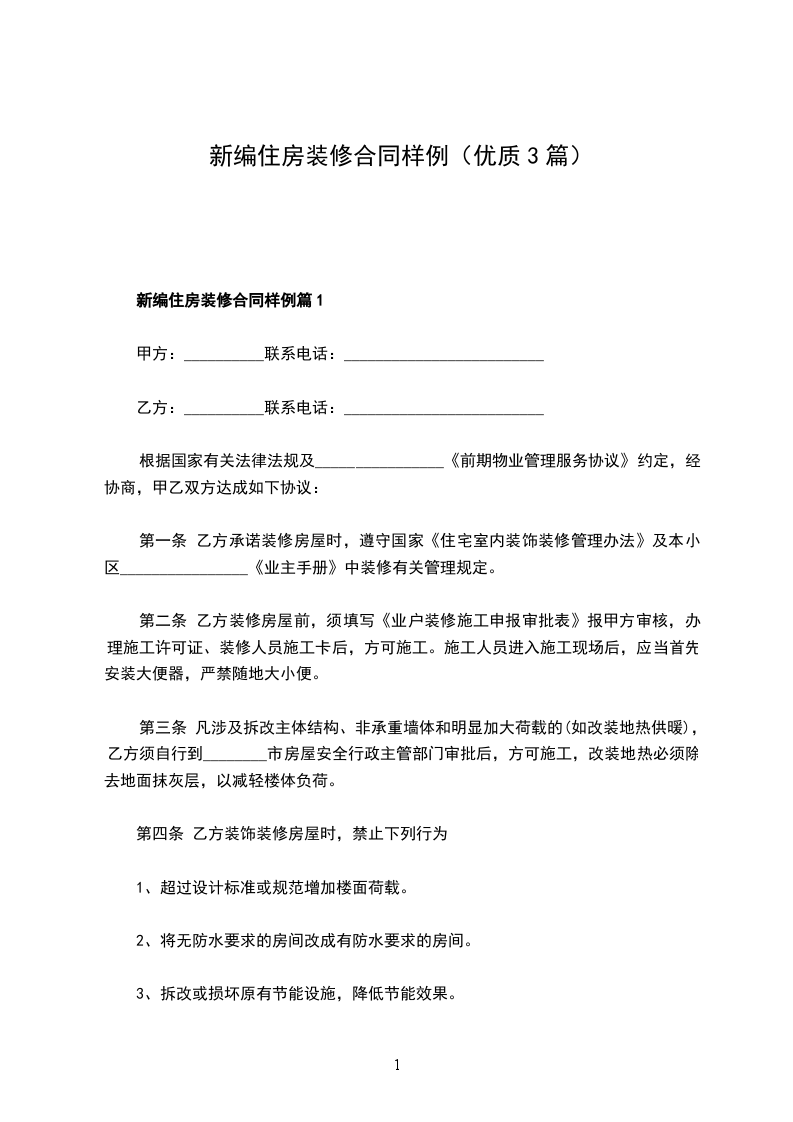 第一条 乙方承诺装修房屋时,遵守国家《住宅室内装饰装修管理办法》及本小区________________《业主手册》中装修有关管理规定。