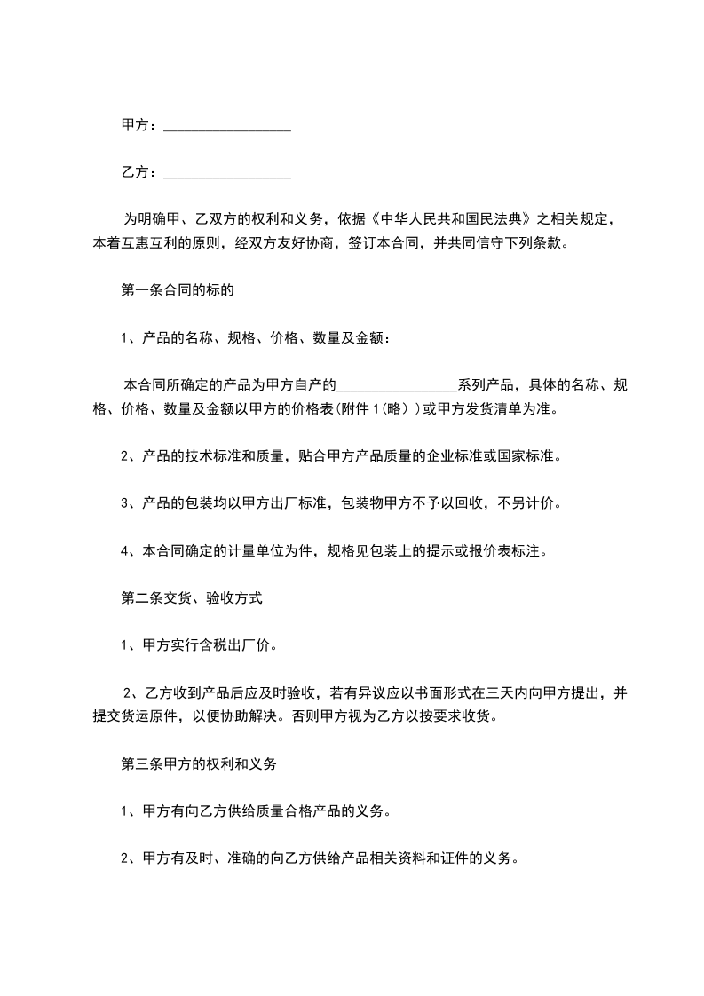 1、甲方有向乙方供给质量合格产品的义务。