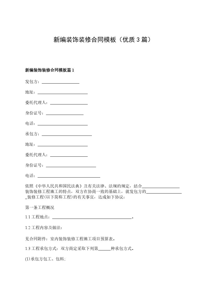 新编装饰装修合同篇3