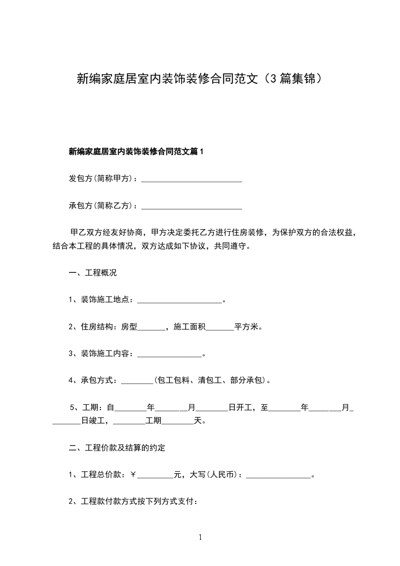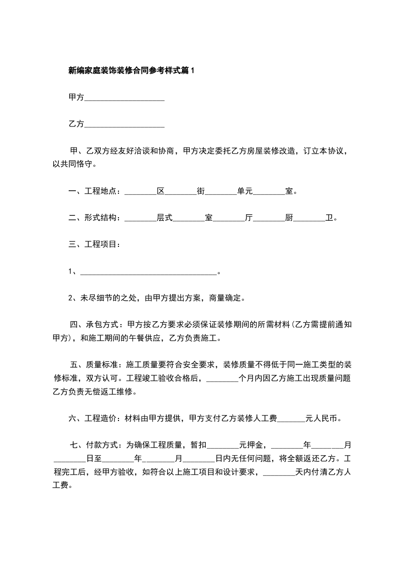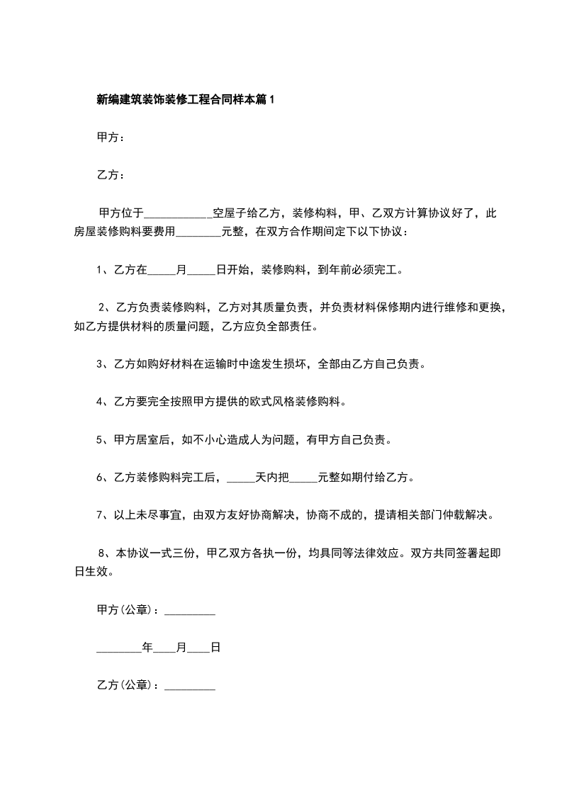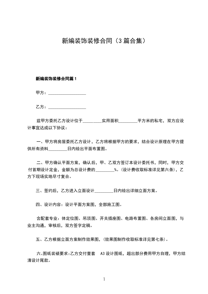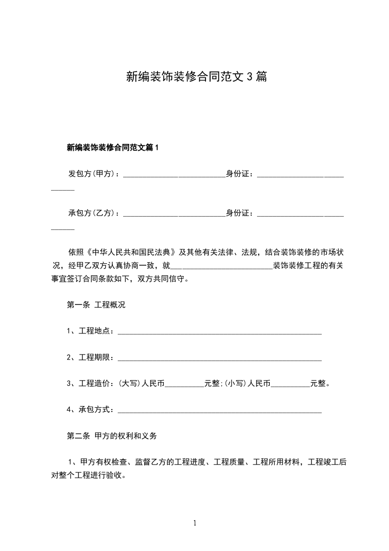 新编装饰装修合同篇1
