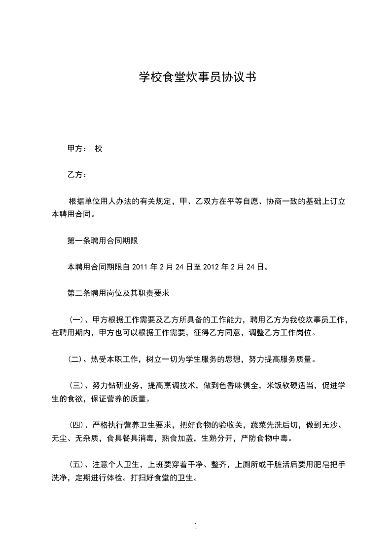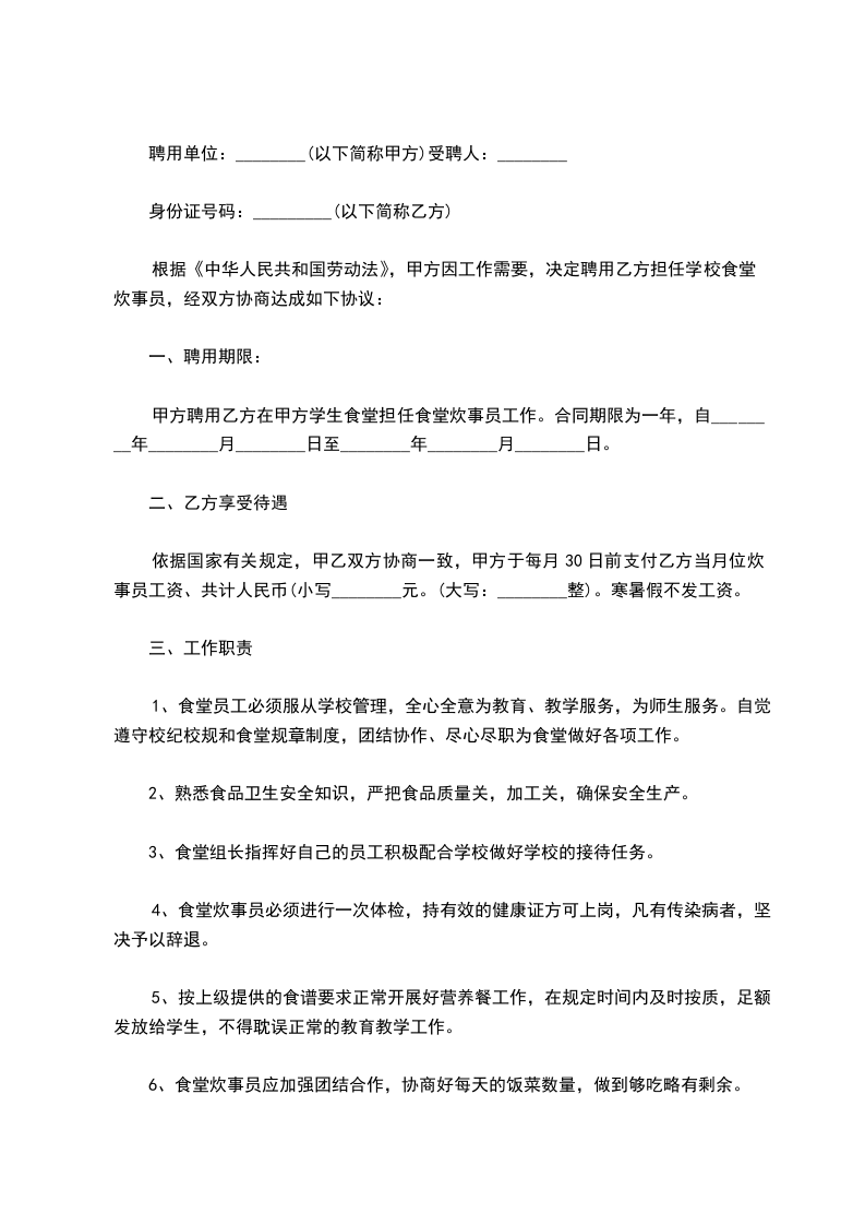 一、食堂炊事员直接受食堂事务长的领导,要努力为职工营造一个温馨、卫生、整洁的就餐环境,保证职工正常就餐及食品卫生安全。