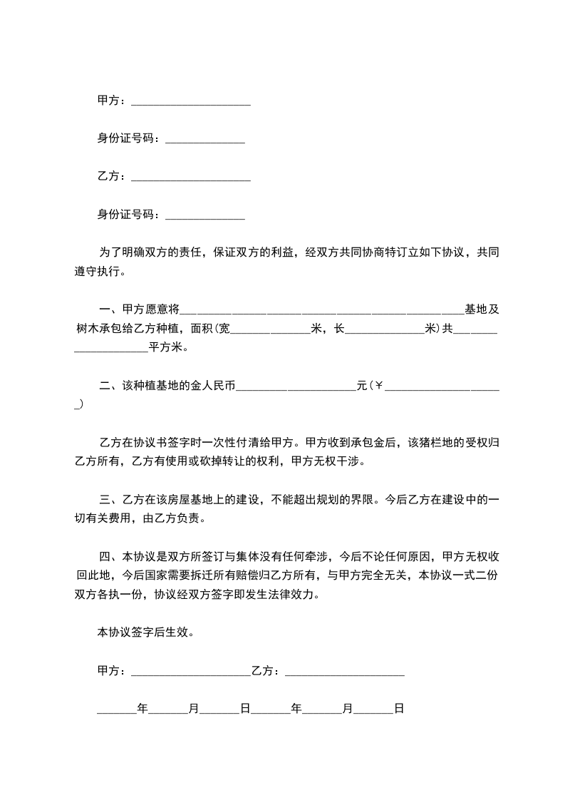 3、乙方在甲方的土地上种植____________不得迁移户口,不向甲方提出其他任何条件。