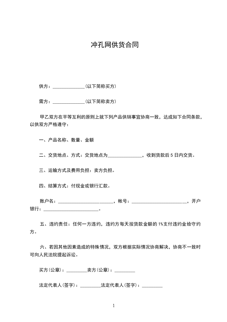 五、违约责任:任何一方违约,违约方每天按货款金额的1%支付违约金给守约方。