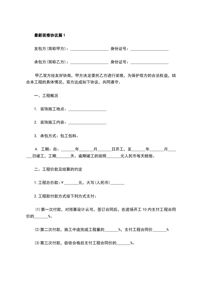 五、装修价款:________________装修总价款人民币______元。总价款包含设计费、材料款、人工费、施工清运费、装卸费、税费等全部费用。