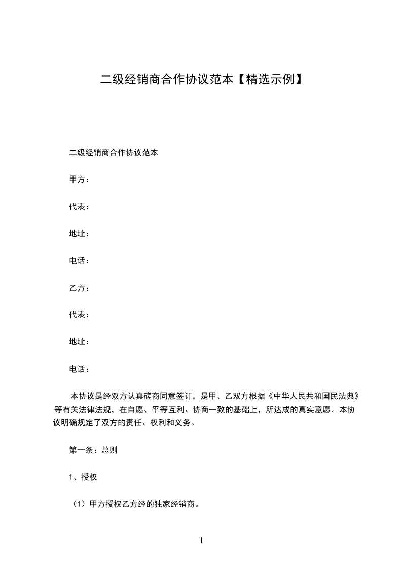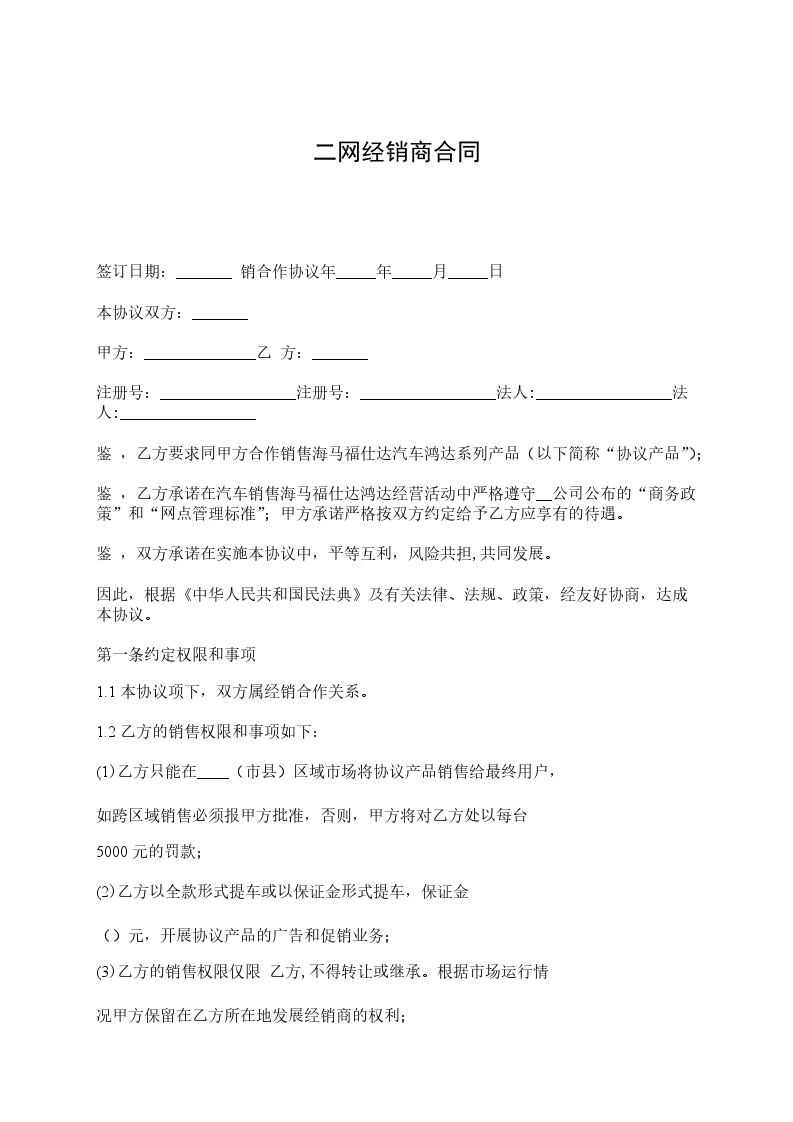(7)乙方未经甲方允许,不可以在授权区域发展二级网络或设立分销点。