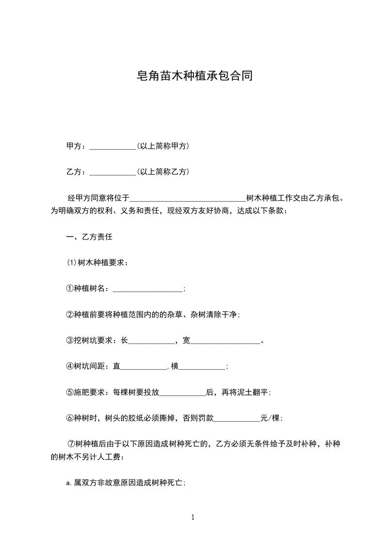 2、在合同期内,甲乙双方均不能砍伐__________树,也不能种植其它作物。