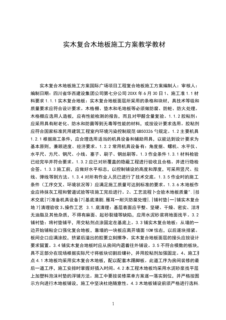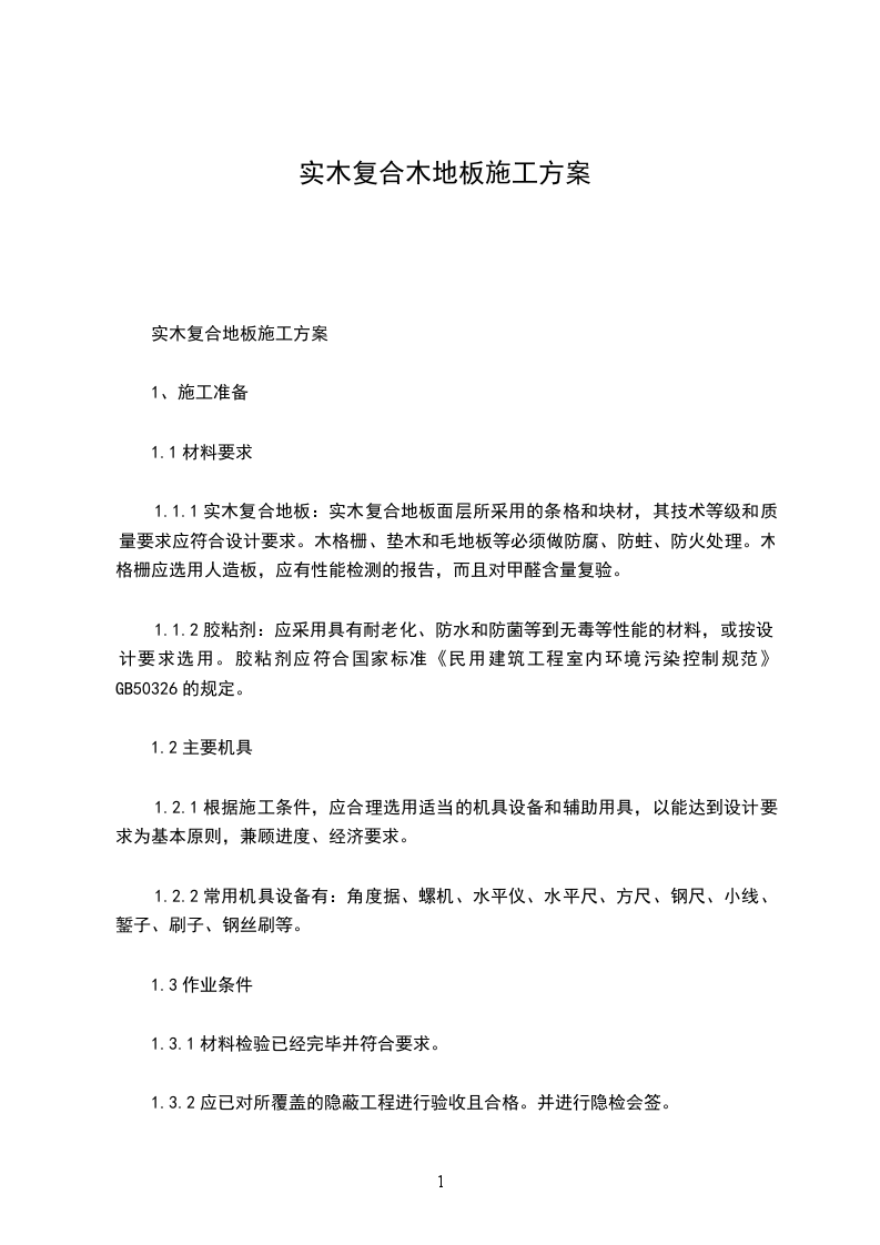 实木复合地板施工方案