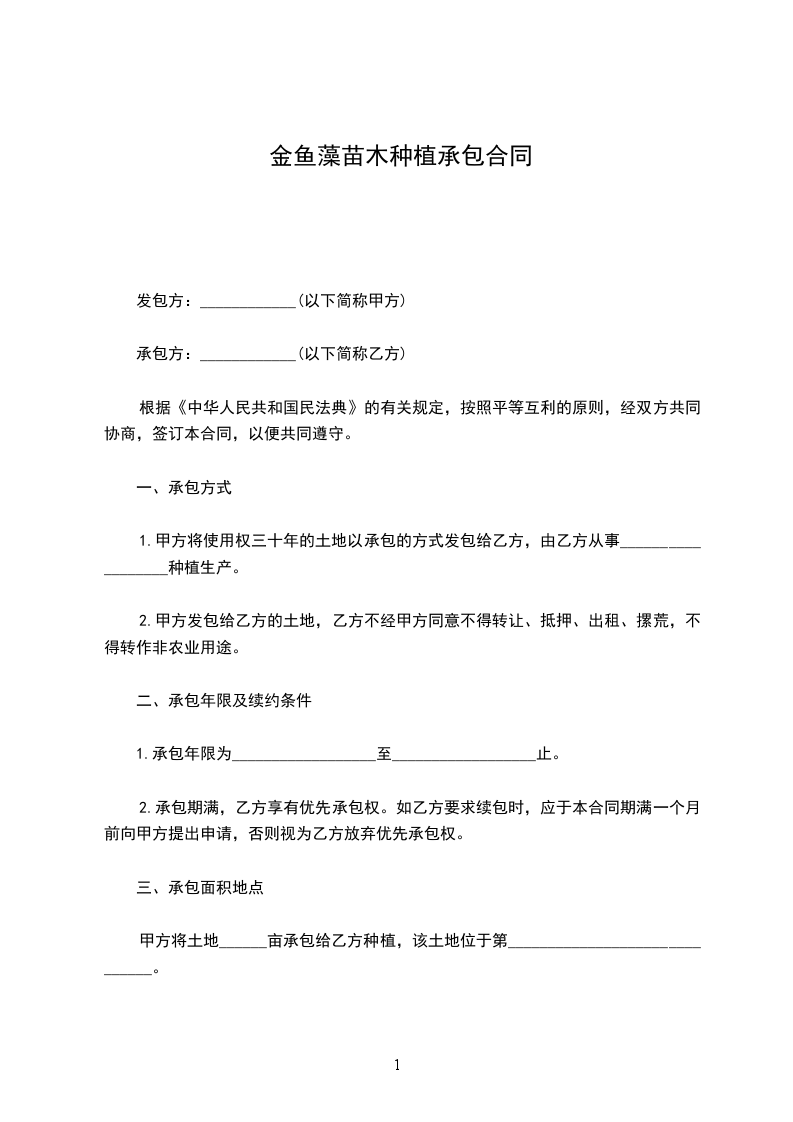 金鱼藻苗木种植承包合同