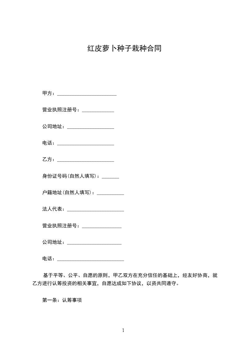 (一)、本合同自甲乙双方代表签字单位盖章后生效。有效期到______年______月______日。