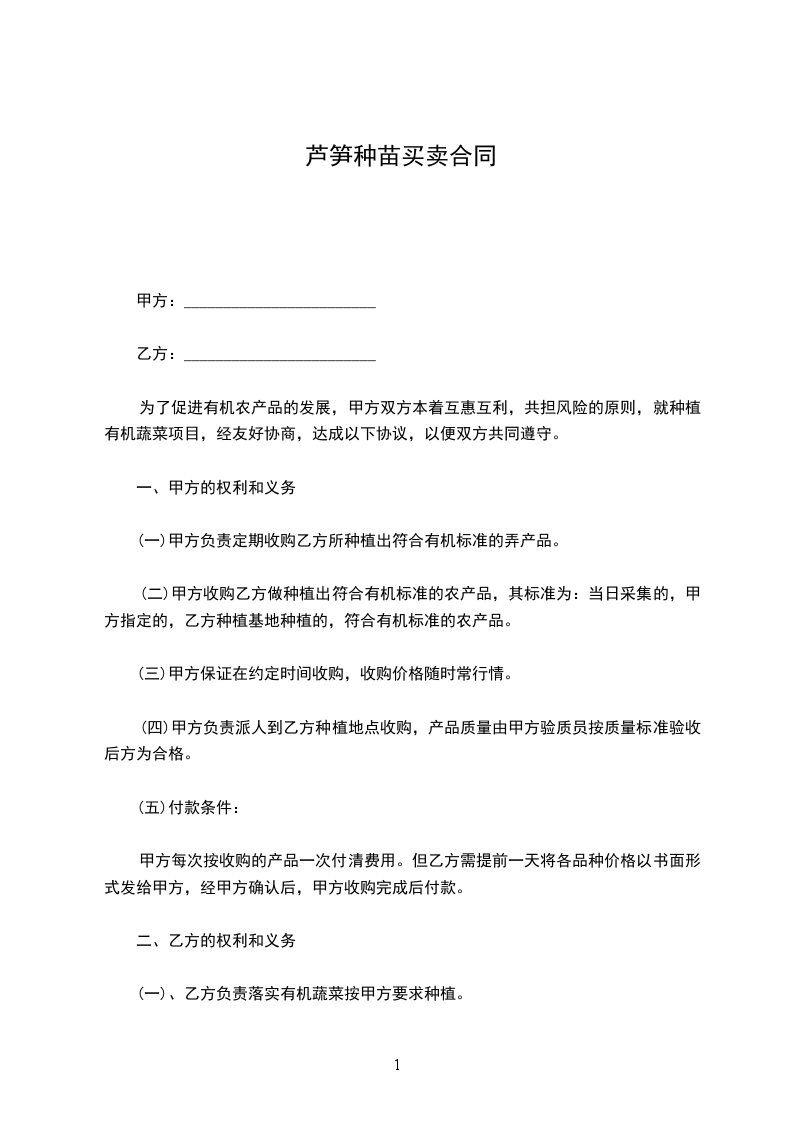 (一)甲方负责定期收购乙方所种植出符合有机标准的弄产品。
