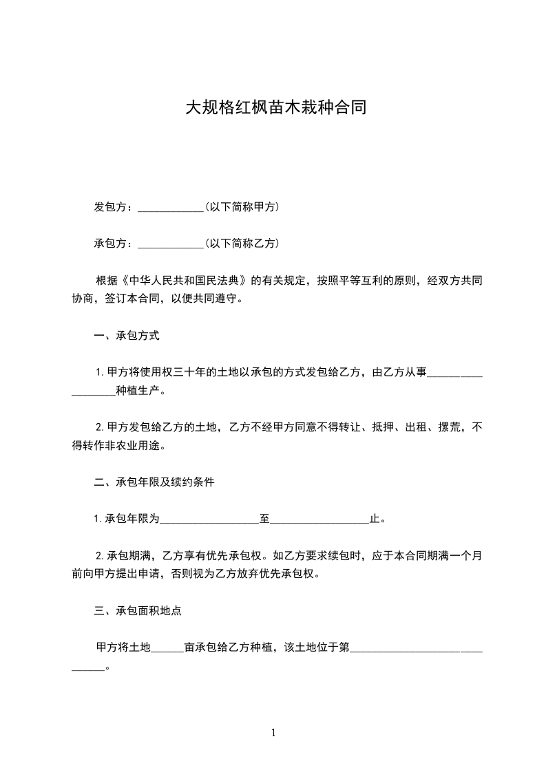 经甲方同意将位于______________________________树木种植工作交由乙方承包。为明确双方的权利、义务和责任,现经双方友好协商,达成以下条款: