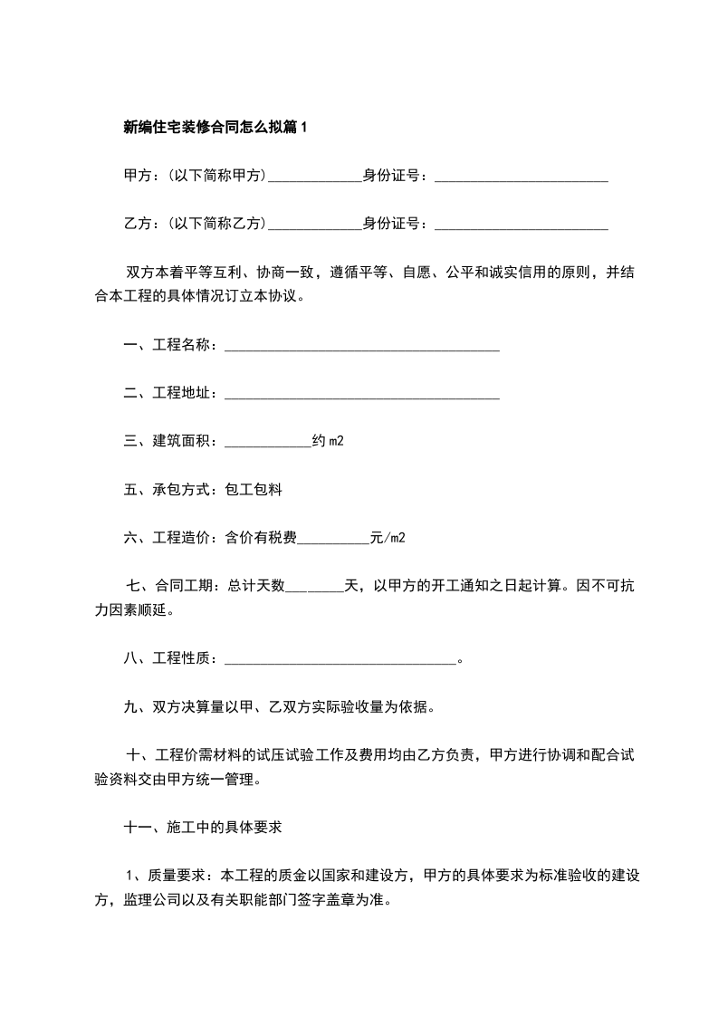 住宅装修合同怎么拟篇2