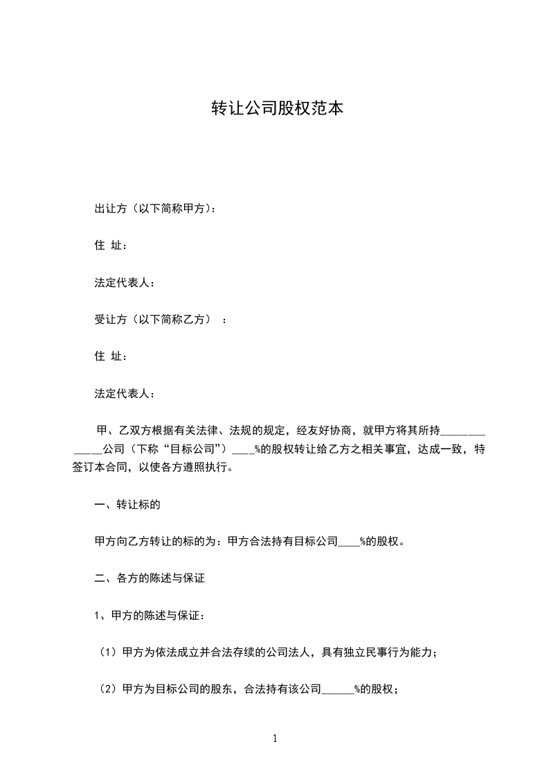 1、甲、乙双方完成本合同所规定的与股权转让有关的全部手续,并将所转让的目标公司 ________% 的股权过户至乙方名下。