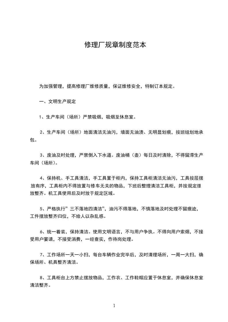 为加强管理,提高修理厂维修质量,保证维修安全,特制订本规定。