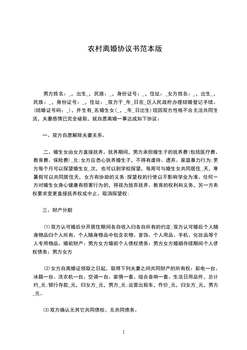 女方:________,汉族,______年___月___日出生,住址_____________________,住本村。