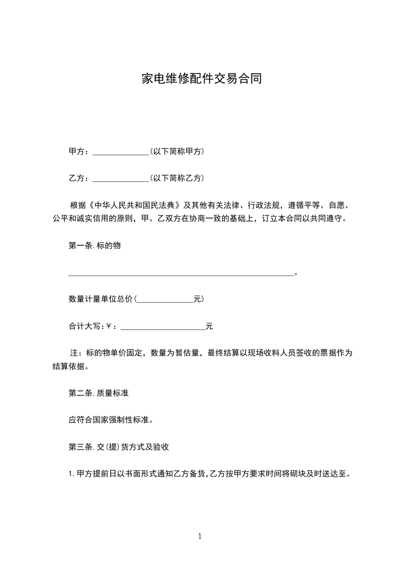 注:标的物单价固定,数量为暂估量,最终结算以现场收料人员签收的票据作为结算依据。