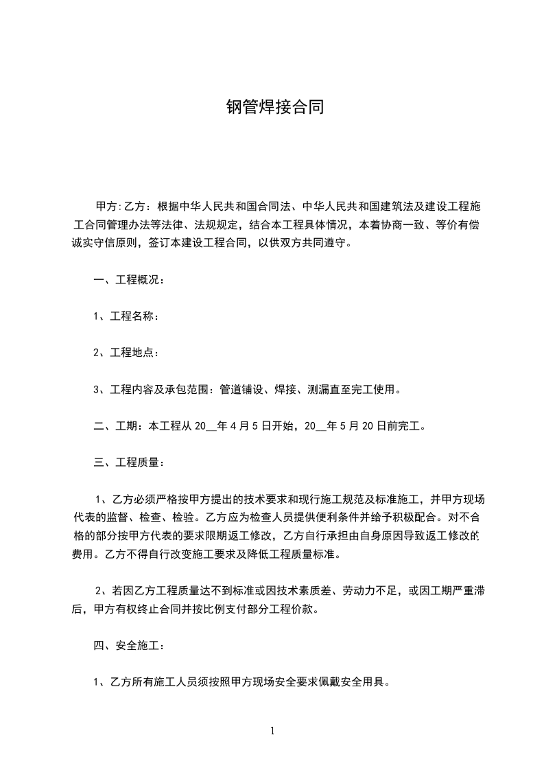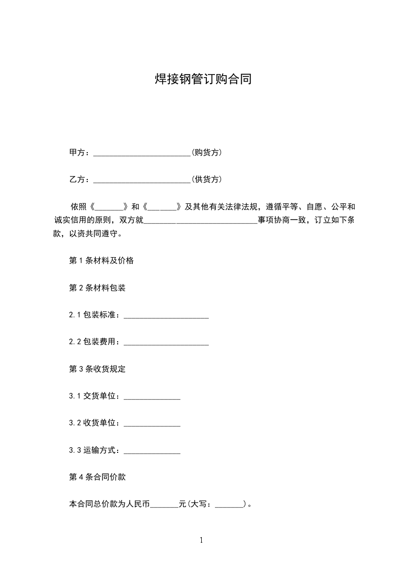 焊接钢管交易合同