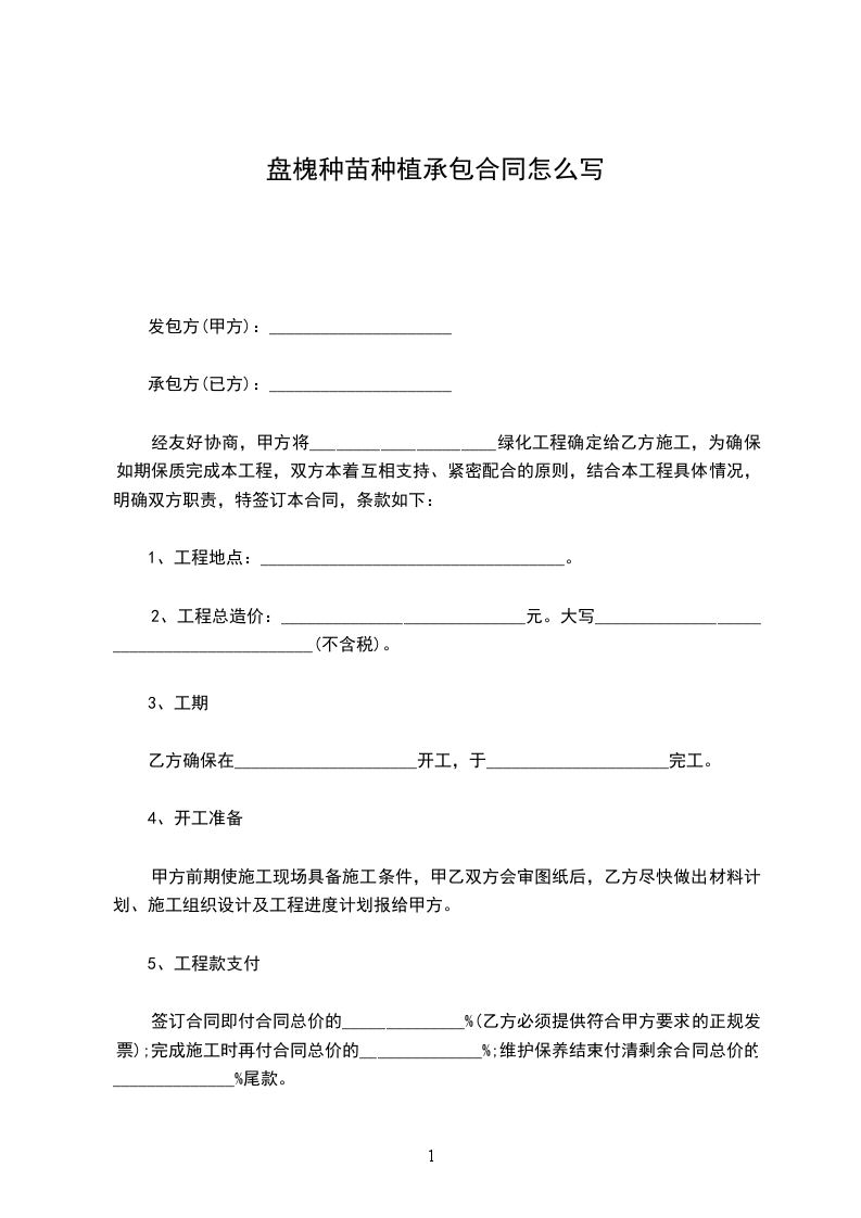 甲方委托________________________工程有限公司对____________________________项目绿化苗木、草坪进行种植养护。经双方商定,签订如下合同: