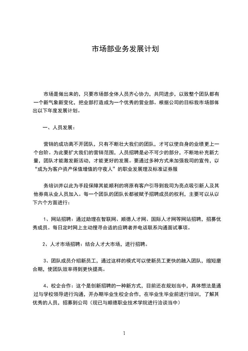 销售部利润主要有:计算机销售;电脑耗材;打印机耗材;打字复印;计算机网校等和计算机产业相关的业务。今年主要目标:家庭用户市场的开发、办公耗材市场的抢占。针对家庭用户加大宣传力度,办公耗材市场用价格去竞争、薄利多销。建立完善的销售档案,定期进行售后跟踪,抢占办公耗材市场,争取获得更大的利润。这里也需要我们做大量的工作,送货一定及时、售后服务一定要好,让客户信任我们、让客户真真切切的享受到上帝般的待遇。