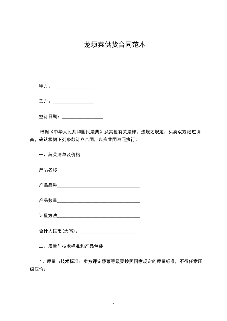 1、质量与技术标准:卖方评定蔬菜等级要按照国家规定的质量标准,不得任意压级压价。