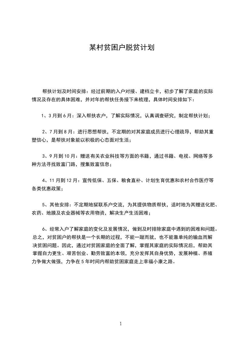 1、3月到6月:深入帮扶农户,了解实际情况,认真调查研究,制定帮扶计划;
