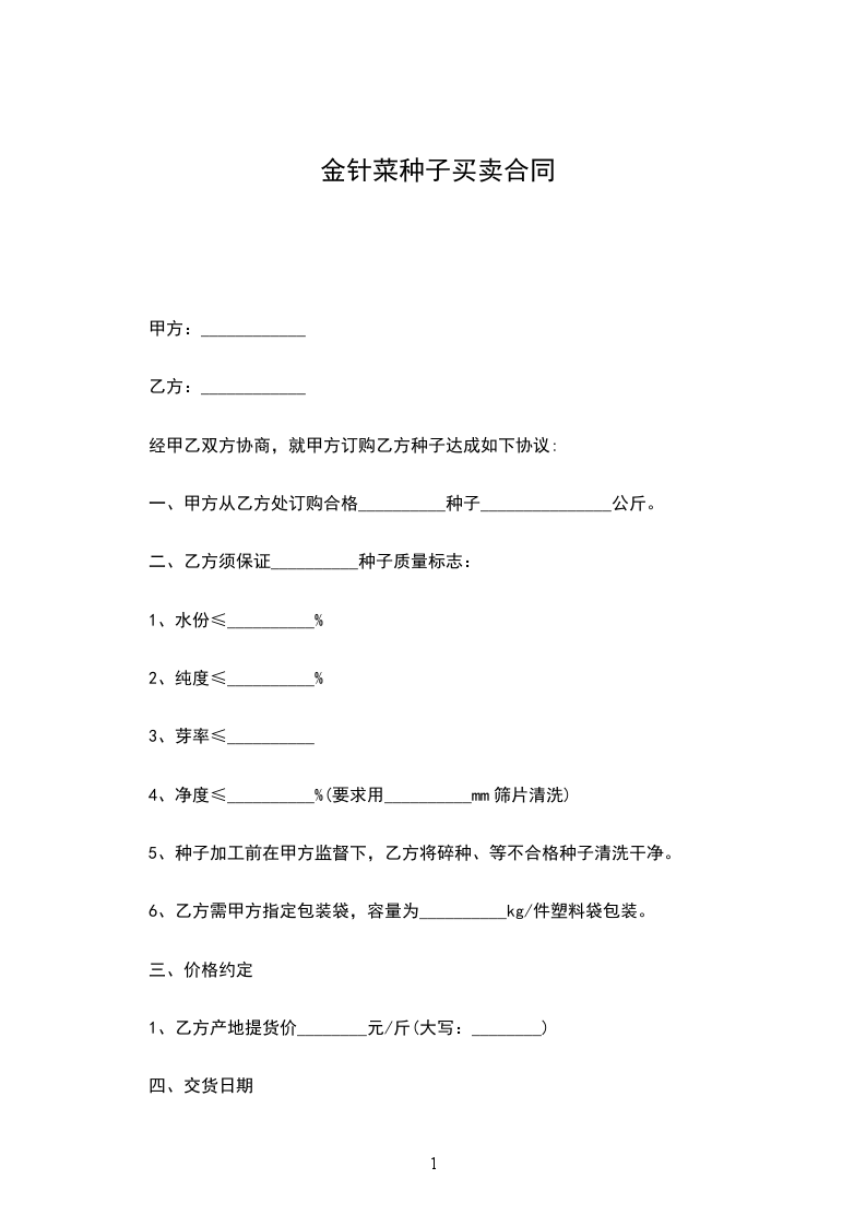 一、甲方从乙方处订购合格__________种子_______________公斤。