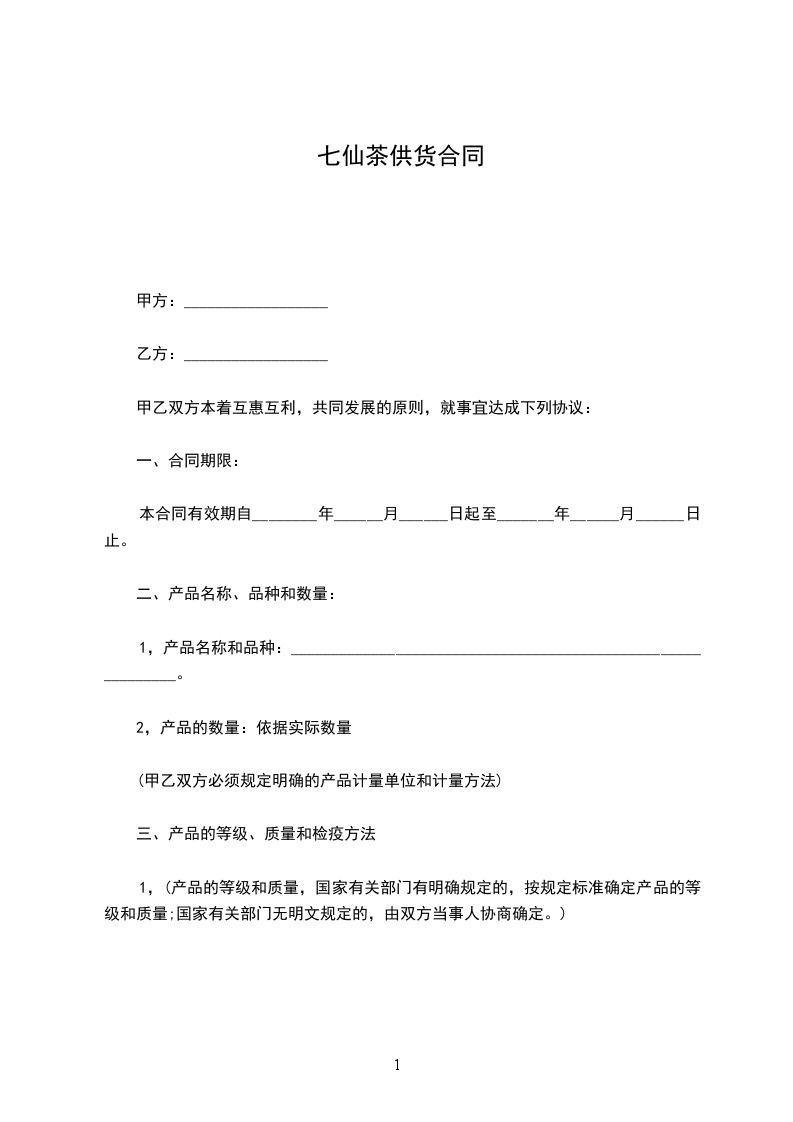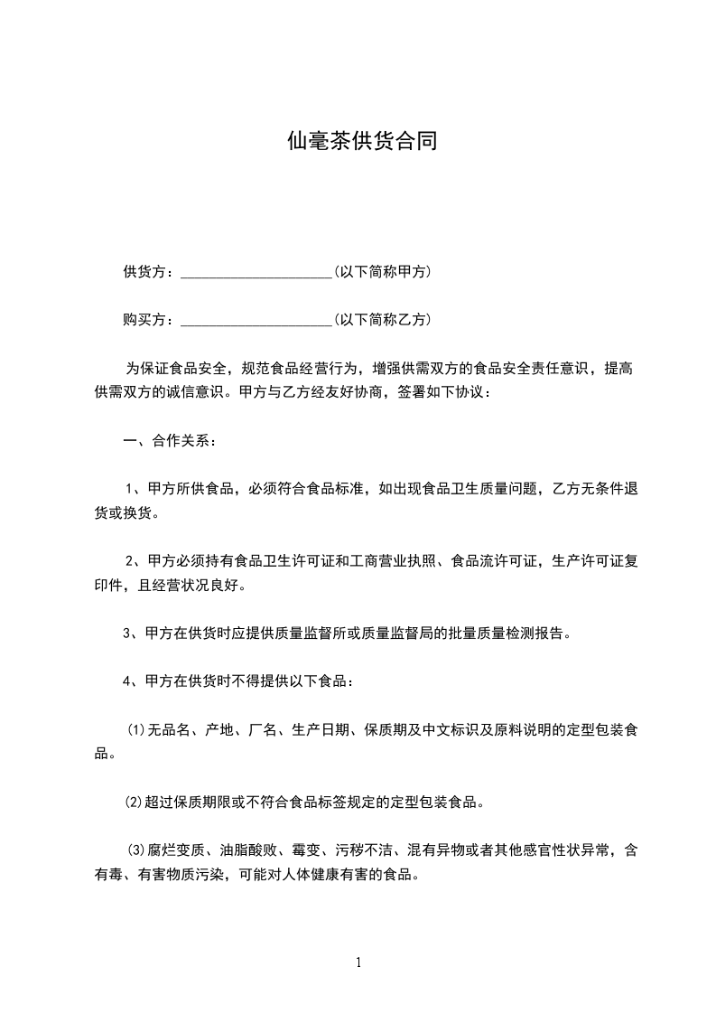 一品仙茶供货合同