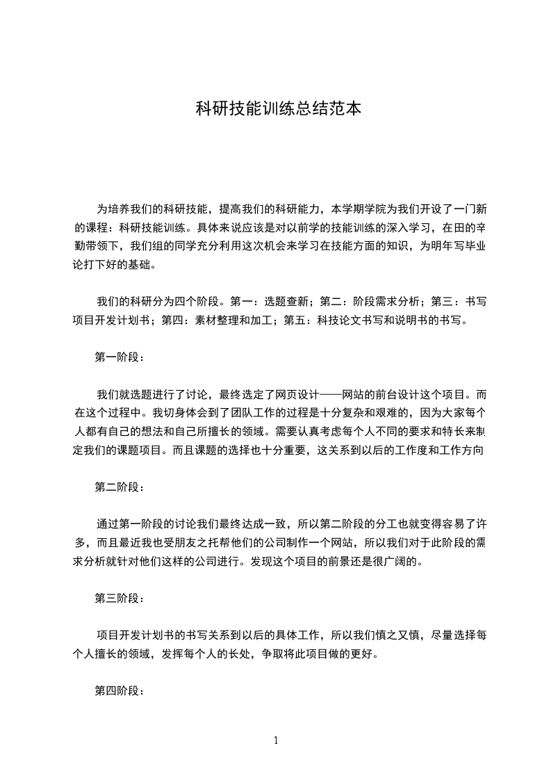 我们的科研分为四个阶段。第一:选题查新;第二:阶段需求分析;第三:书写项目开发计划书;第四:素材整理和加工;第五:科技论文书写和说明书的书写。