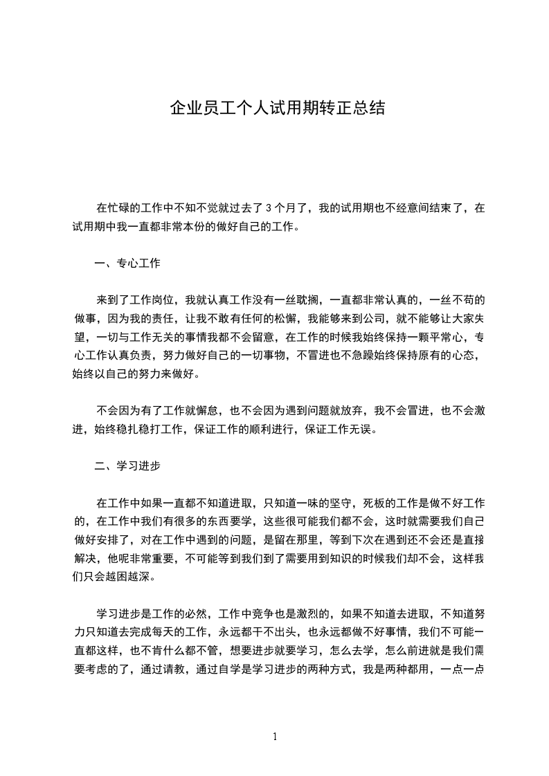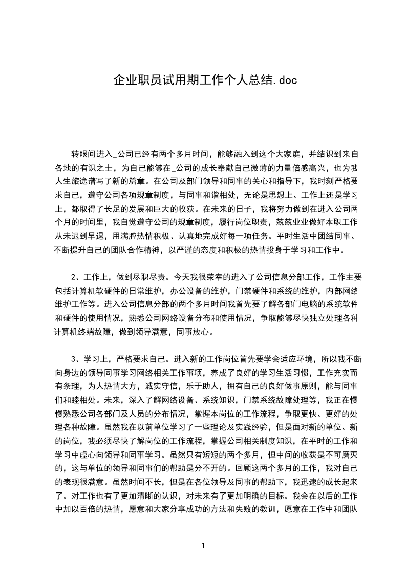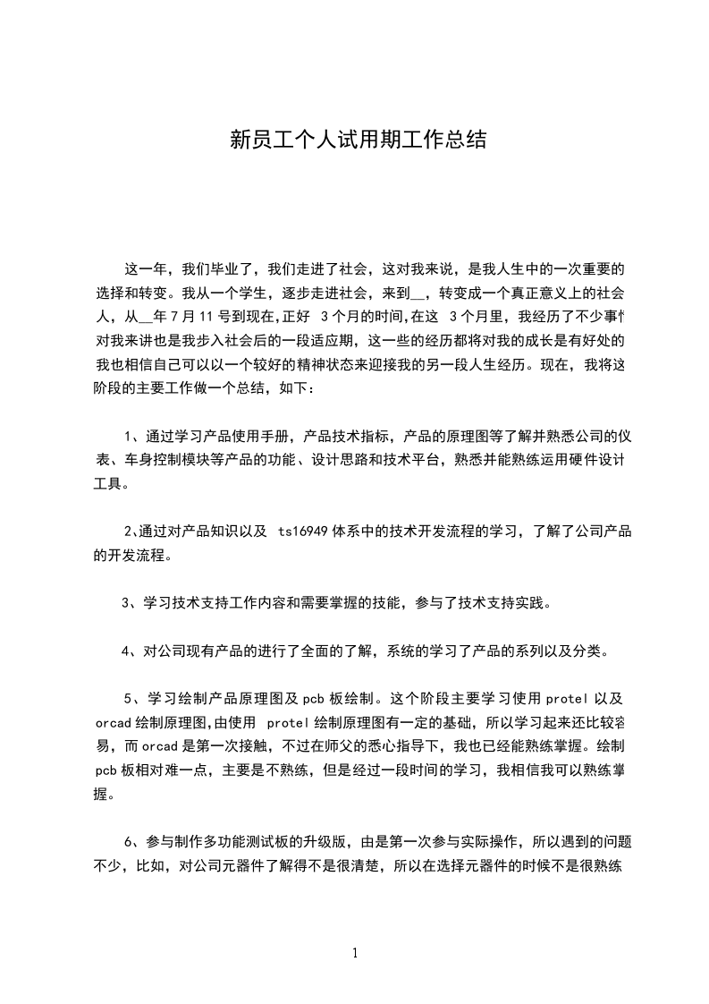 企业新员工个人试用期工作总结2