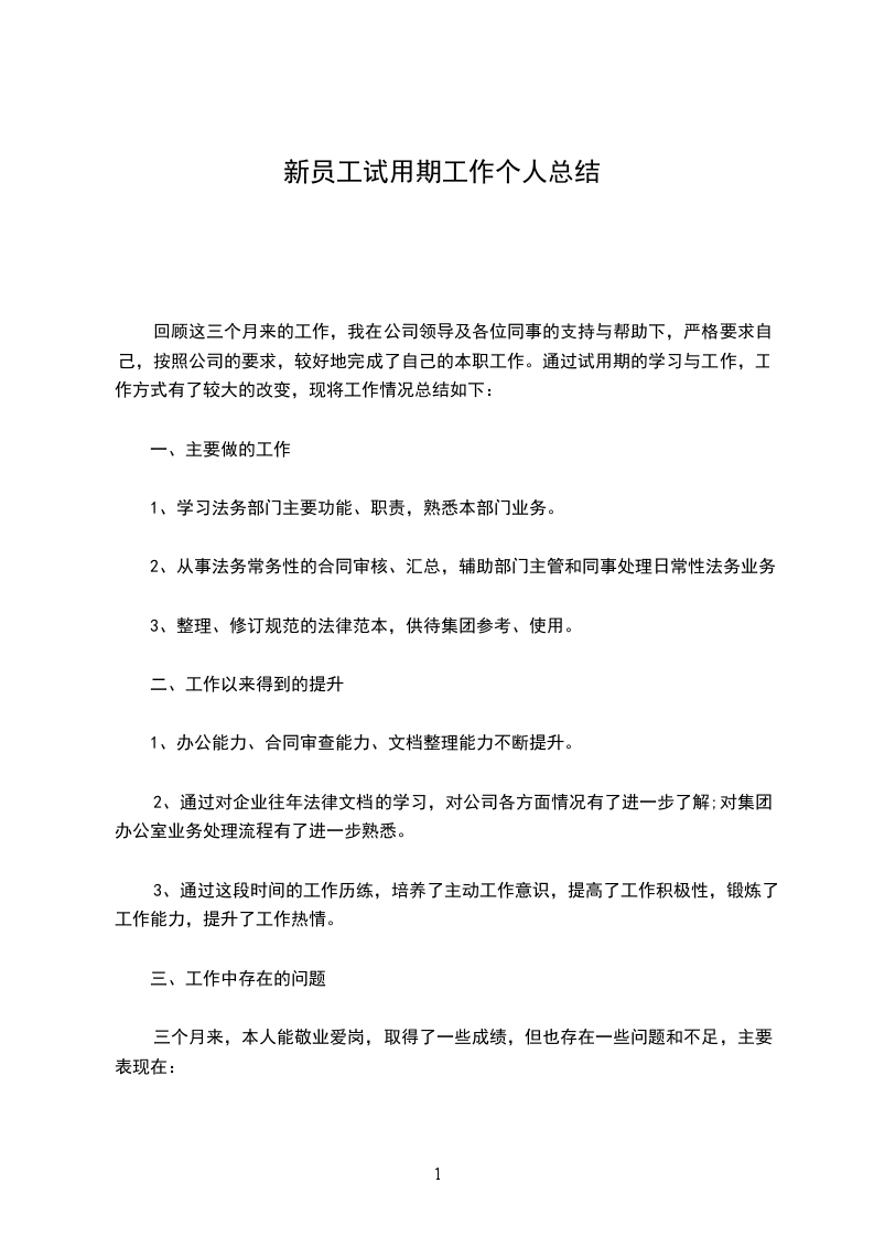 企业新员工个人试用期工作总结3