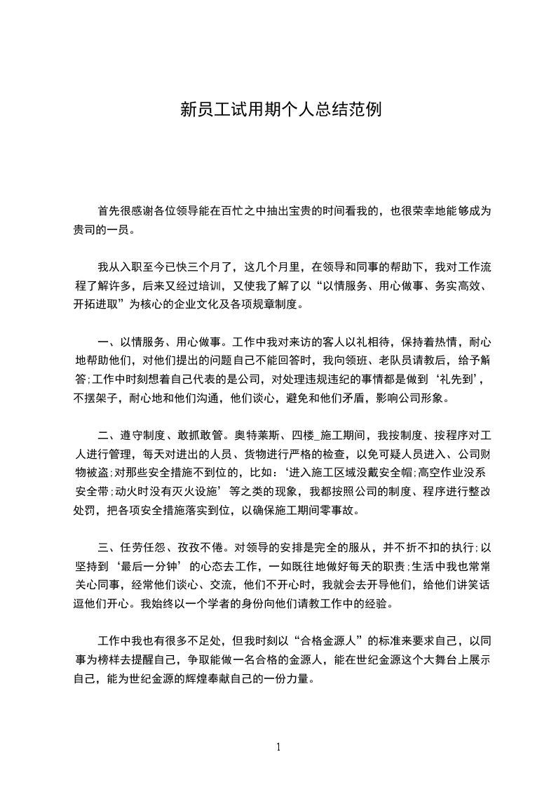 企业新员工个人试用期工作总结4