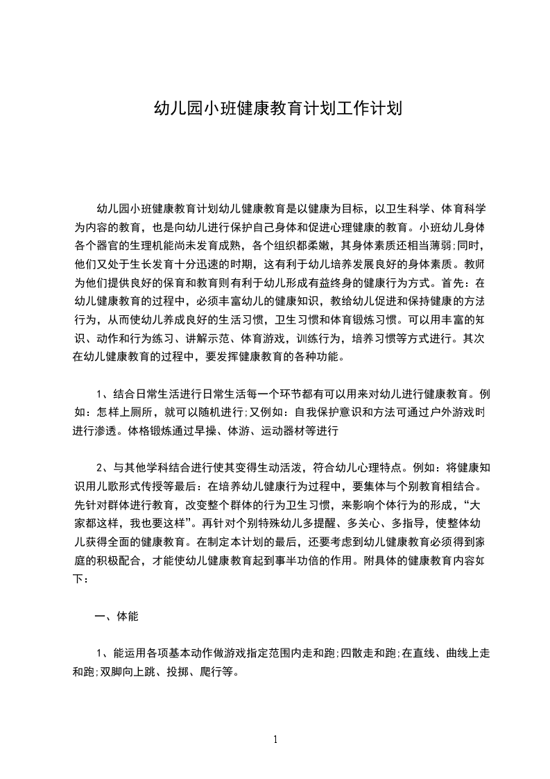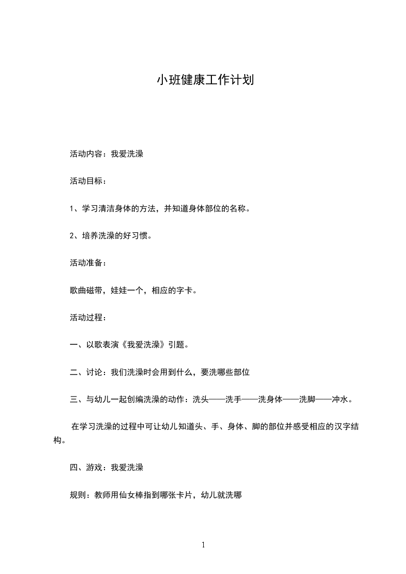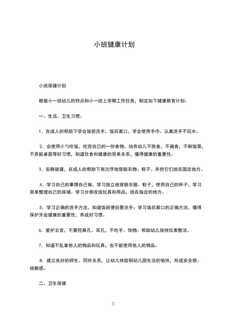 根据小一班幼儿的特点和小一班上学期工作任务,制定如下健康教育计划: