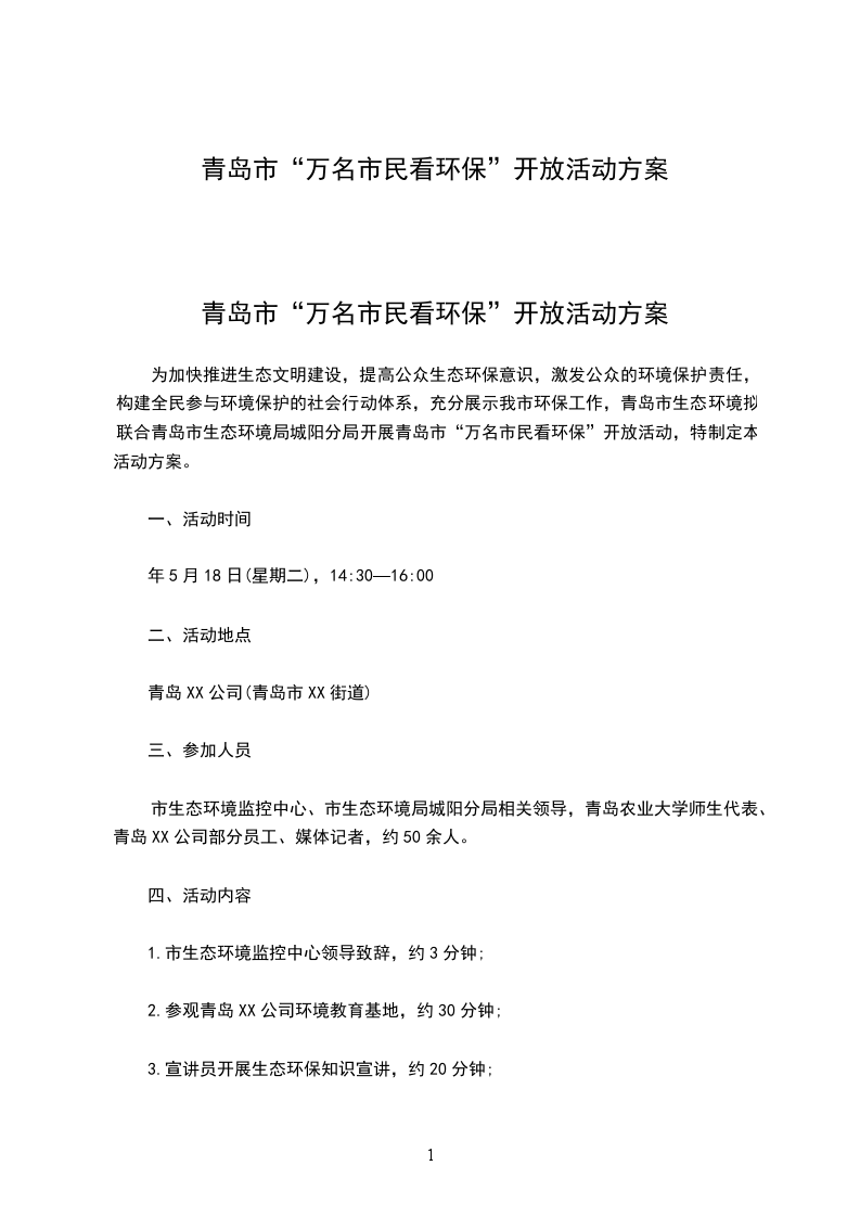 为加快推进生态文明建设,提高公众生态环保意识,激发公众的环境保护责任,构建全民参与环境保护的社会行动体系,充分展示我市环保工作,青岛市生态环境拟联合青岛市生态环境局城阳分局开展青岛市“万名市民看环保”开放活动,特制定本活动方案。