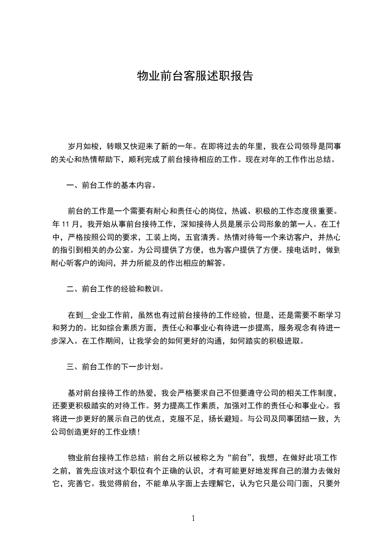 在到__企业工作前,虽然也有过前台接待的工作经验,但是,还是需要不断学习和努力的。比如综合素质方面,责任心和事业心有待进一步提高,服务观念有待进一步深入。在工作期间,让我学会的如何更好的沟通,如何踏实的积极进取。