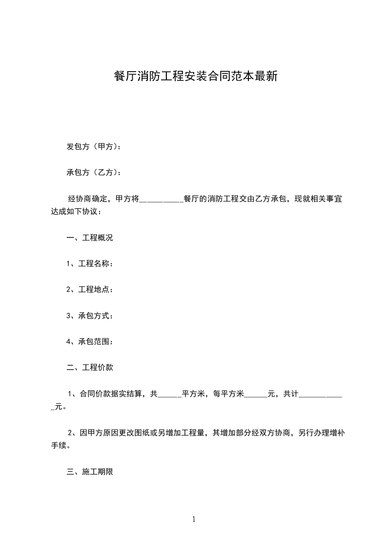经协商确定,甲方将___________餐厅的消防工程交由乙方承包,现就相关事宜达成如下协议: