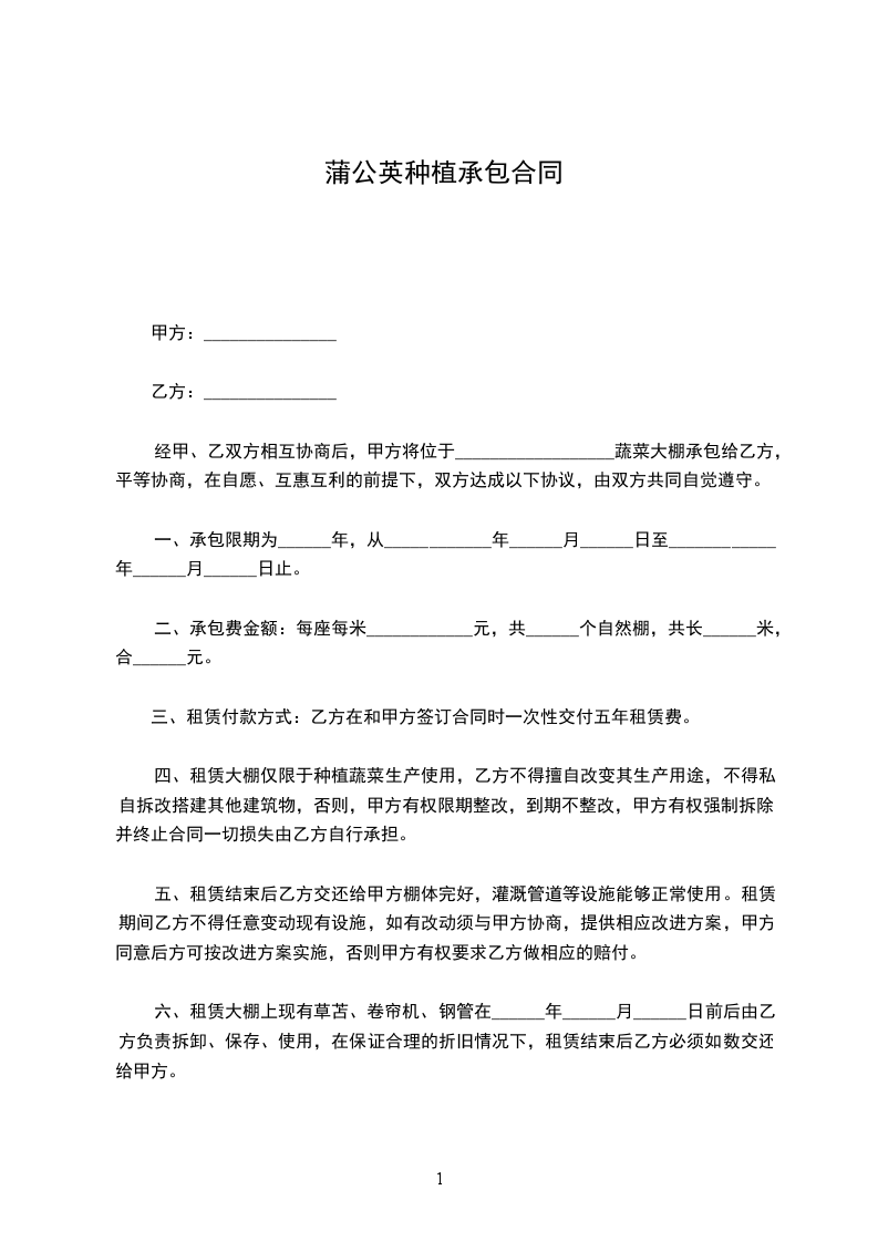 九、乙方不得将所承包的大棚转包给他人经营,一经发现甲方将解除乙方承包权,合同终止,大棚回收,因此而造成的经济损失由乙方自行承担,承包费不予退回。