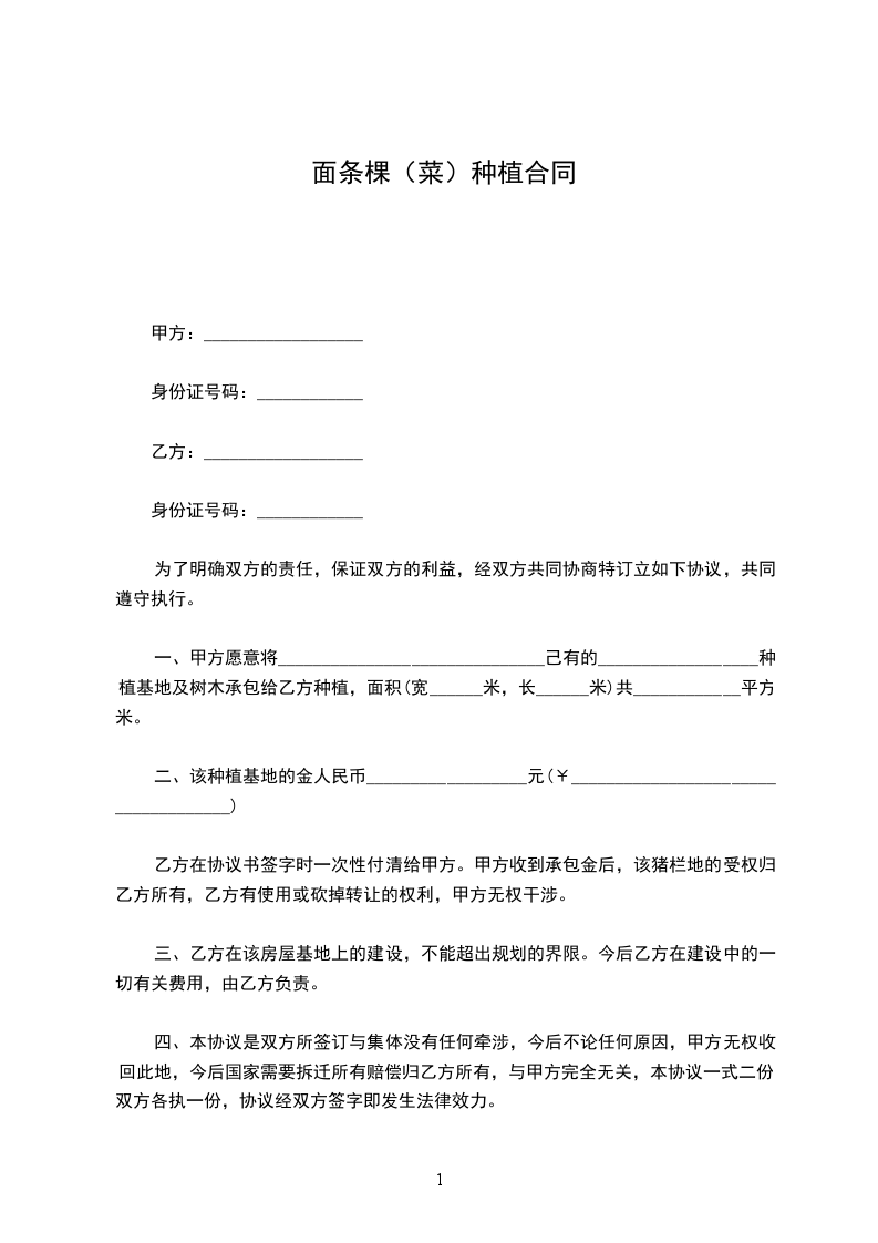 一、甲方愿意将______________________________己有的__________________种植基地及树木承包给乙方种植,面积(宽______米,长______米)共____________平方米。