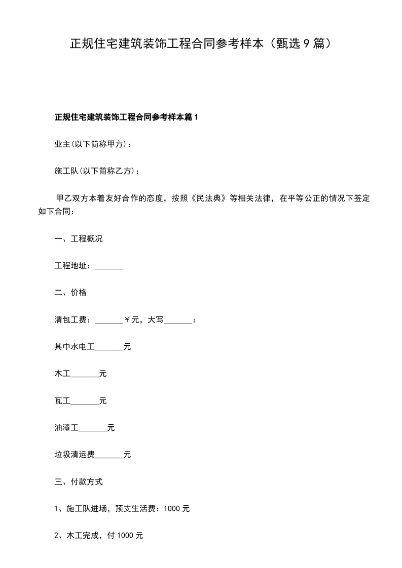正规住宅建筑装饰工程合同参考样本篇9
