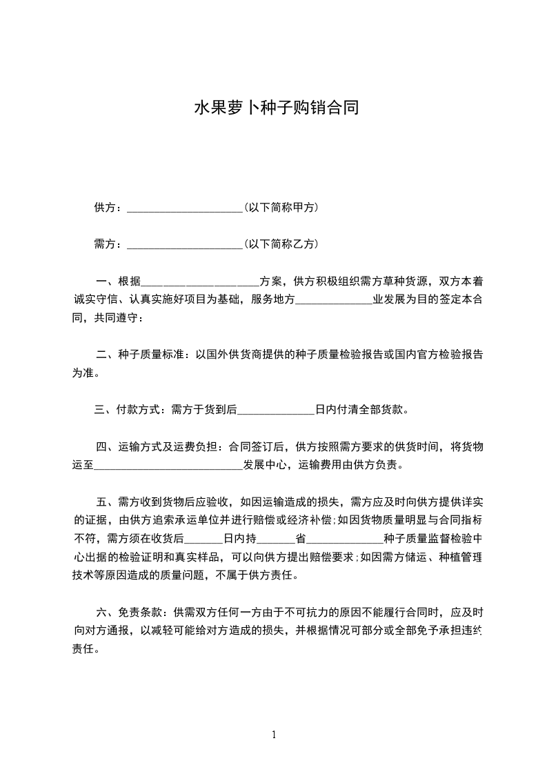 一、根据_____________________方案,供方积极组织需方草种货源,双方本着诚实守信、认真实施好项目为基础,服务地方______________业发展为目的签定本合同,共同遵守: