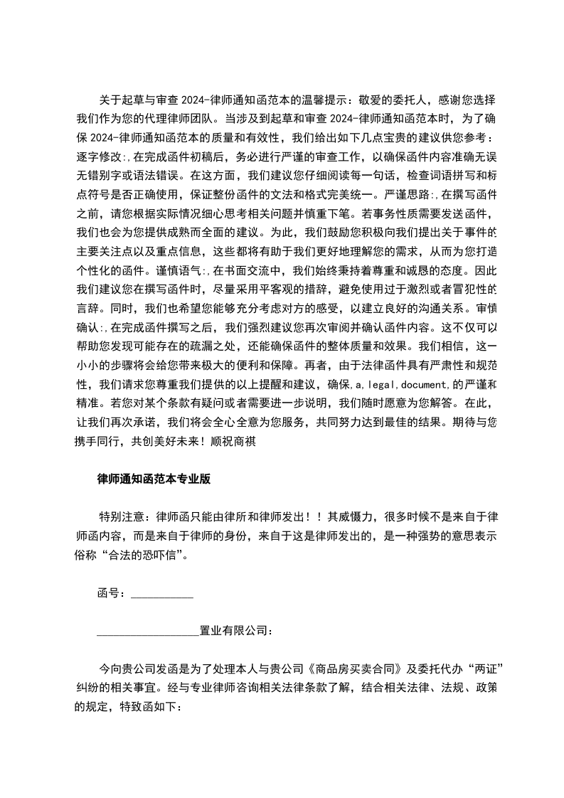 今向贵公司发函是为了处理本人与贵公司《商品房买卖合同》及委托代办“两证”纠纷的相关事宜。经与专业律师咨询相关法律条款了解,结合相关法律、法规、政策的规定,特致函如下: