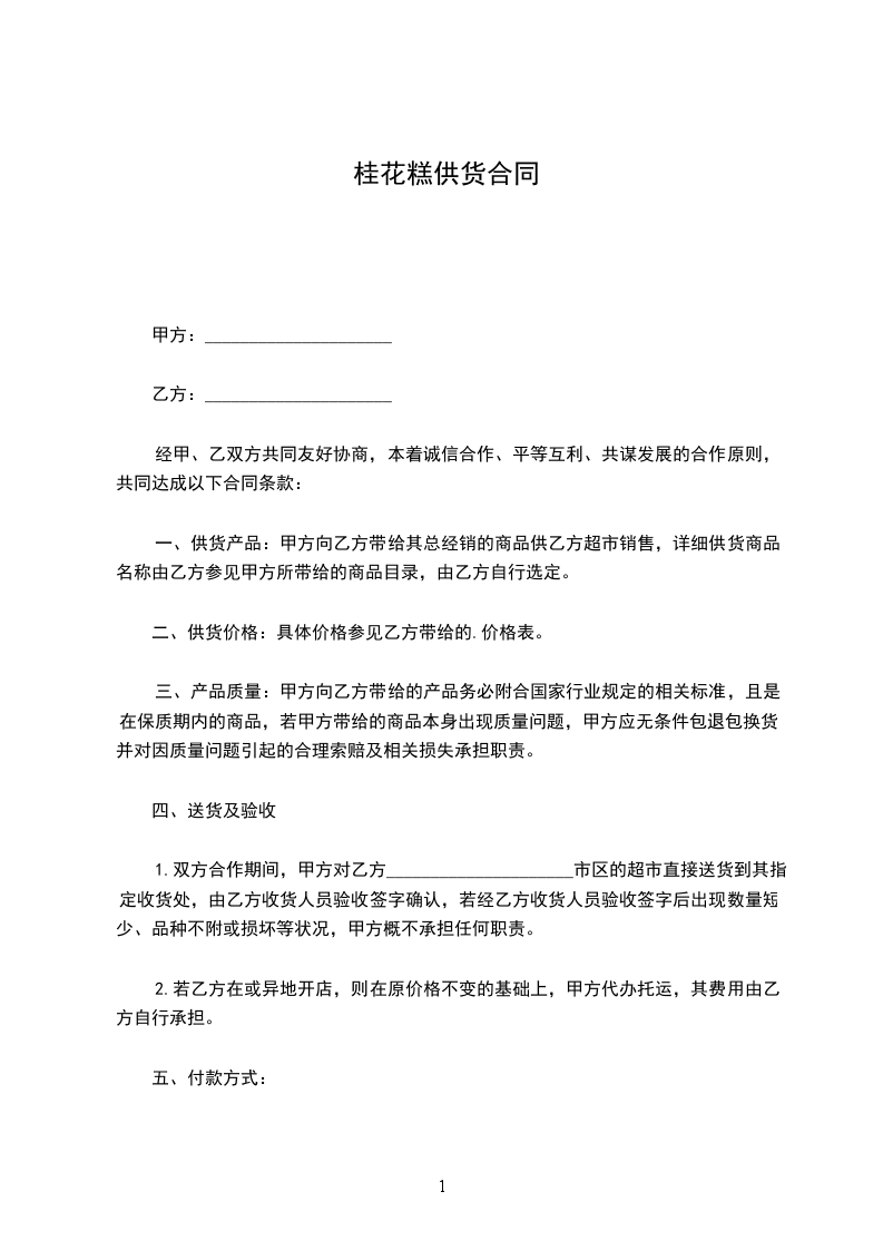 一、供货产品:甲方向乙方带给其总经销的商品供乙方超市销售,详细供货商品名称由乙方参见甲方所带给的商品目录,由乙方自行选定。
