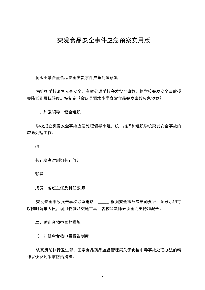 二、成立食物中毒预防应急小组