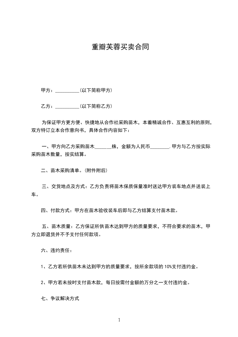 一、甲方向乙方采购苗木_______株,金额为人民币________.甲方与乙方按实际采购苗木数量,按实结算。