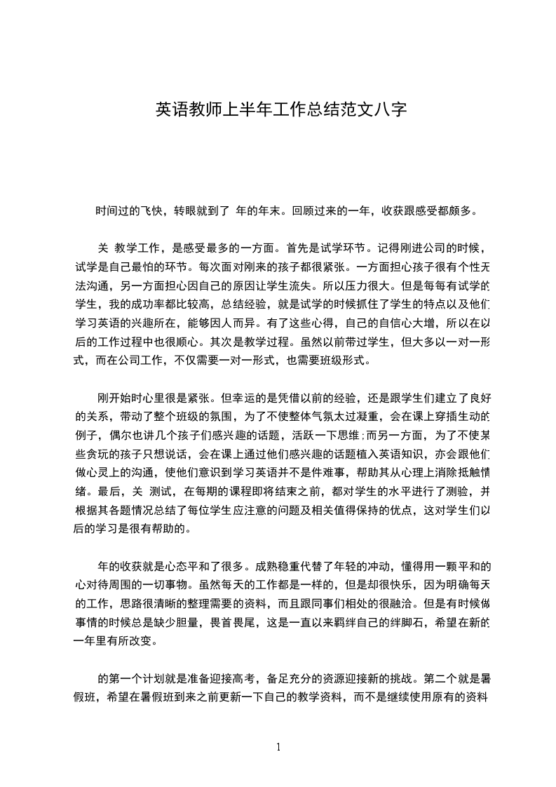 虽然 年在公司的发展过程中出现了一些问题,但是经过大家的努力,公司形势正一步步好转,作为一名教师,我感觉很高兴。个人觉得,创新,是一个人、一个团体、一个民族不断壮大的源泉,墨守成规只能停滞不前。希望公司在新的 年中能在各方面有所创新有所突破,使公司的业务量有所增加,发展更好。