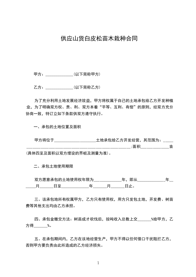 为了充分利用土地发展经济效益,甲方将权属于自己的土地承包给乙方开发种植业,为了明确双方权、责、利、双方本着“平等、互利、有偿”的原则,经双方充分协商一致,特订立如下条款供双方遵守执行。