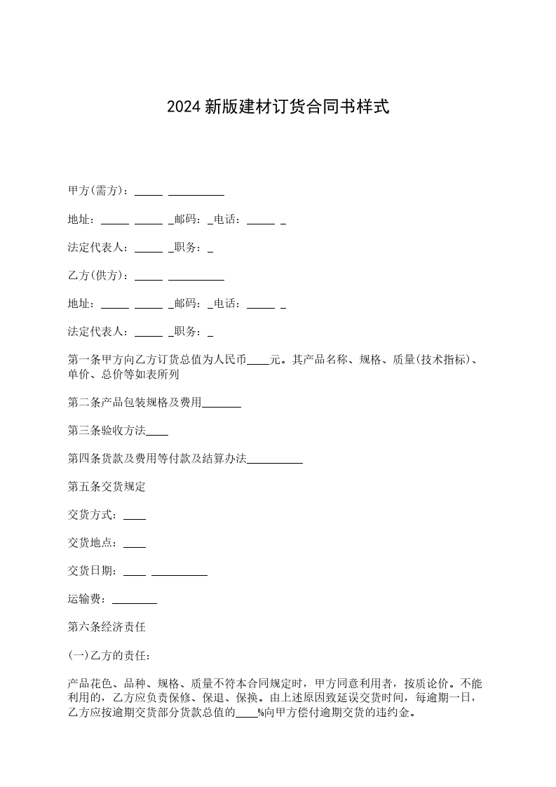 4.属甲方自提的材料,如甲方未按规定日期提货,每延期一天,应偿付乙方延期提货部分货款总额____%的罚金。