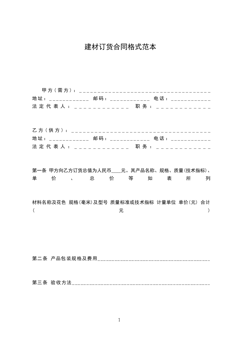 第一条 甲方向乙方订货总值为人民币____元。其产品名称、规格、质量(技术指标)、单价、总价等如表所列