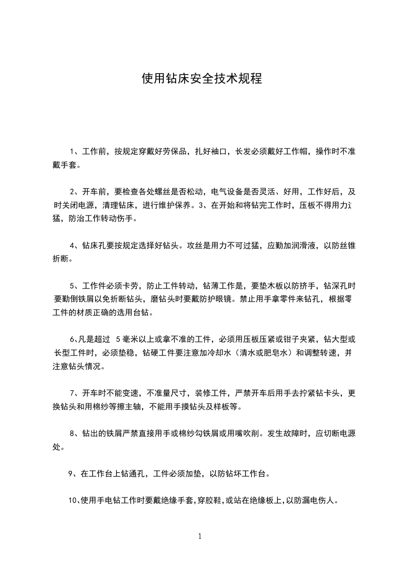 台式钻床安全操作规程
