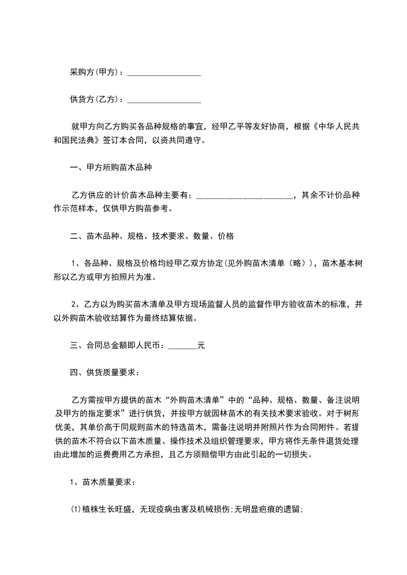 2、乙方在施工过程中,所用绿化材料应符合指定的品种、规格和等级。